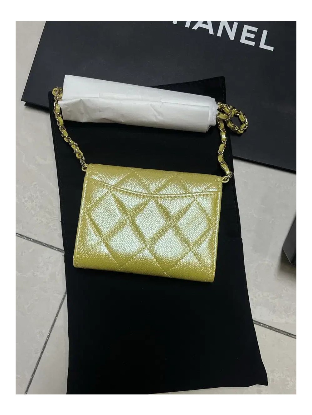 샤넬 클래식 캐비어 옐로우 체인 지갑 woc